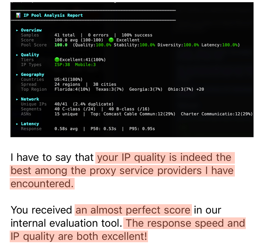The only proxy network that benchmarks #1 on reliability AND treats a 15-person startup like a Fortune 500.